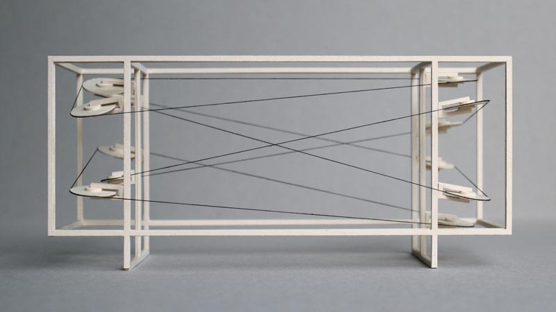 An interactive, kinetic installation about personal whereabouts and identity. Its centrepiece was a revolving directory taken from an atlas and a projection of those toponyma, which the authors had erased from the directory beforehand. The audience´s presence speeded up the physical movement and enlarged the projected names, while their absence made the machine stop and shrank the projected typography. Void machine is the result of a collaboration of Fritz Gnad and Gregor Kuschmirz and has been made possible by Platine Festival 2013 | wood, paper, motors, kinect and other electronics, Cologne, 2013 interactive kinetic installation / kinect / location monitoring