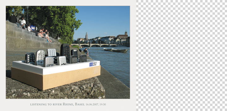answered. The owners listen together to the ambience. The federal united cell phone programm also calls attention to telephone surveillance and motion tracking, e.g. from the surveillance point of view the cellulars appear as a travelling group of people. (The travelling programm for mobile phones was commissioned by federal united.) |