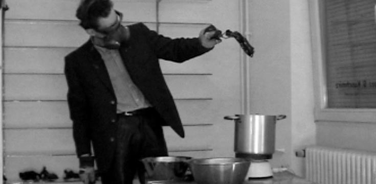 | 200 fried tapes, sculptures and performance, Stuttgart, 2007, based on a conversation with Tristan Honsinger i decided to deep-fry some vhs-tapes. I thought 200 would be a nice number and a good looking amount. During the performance at 'opening exhibition', I recorded the procedure of each tape on the following one in order to season the work with concept art. See all tapes here! Find the short video documentation here! |